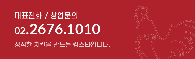 베스트 메뉴 킹스타의 베스트 메뉴를 소개합니다. 순살 갈비양념치킨 지금까지 이런 맛은 없었다! 갈비인가 치킨인가? NO.1 순살 양념치킨 NO.2 순살 후라이드치킨 더욱 바삭바삭하게 즐기는 후라이드 치킨! NO.3 후라이드치킨 더욱 바삭바삭하게 즐기는 후라이드 치킨! NO.4 BEST.01 순살 갈비양념치킨 BEST.02 순살 양념치킨 BEST.03 순살 후라이드치킨 BEST.04 후라이드치킨